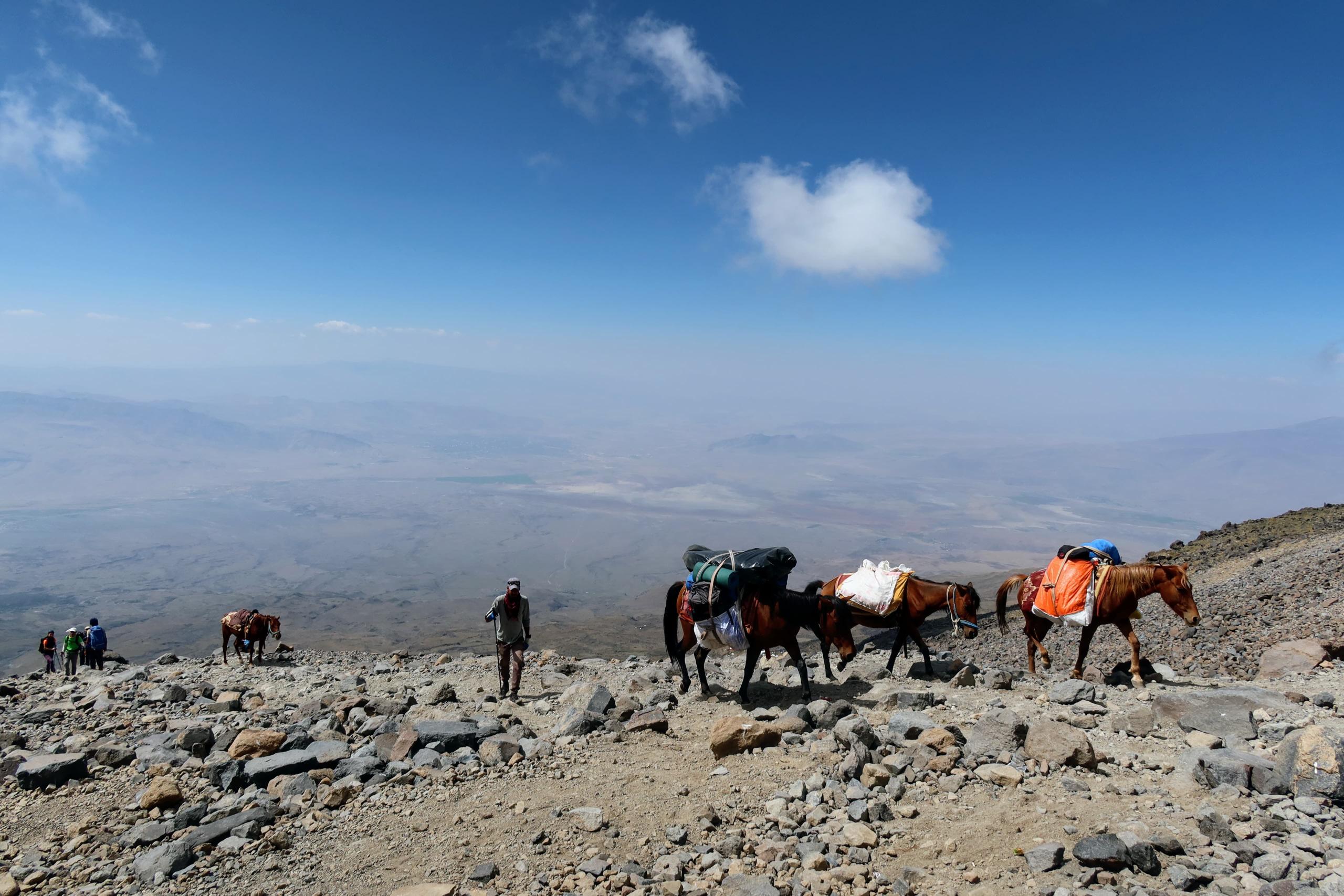 Θα σταματήσουμε κοντά στο χωριό Cevirme, σε υψόμετρο 2.200 μ., απ’ όπου θα αρχίσουμε την ανάβαση προς το Καταφύγιο 1 (3.200 μ.). Οι αποσκευές και τα τρόφιμα θα μεταφερθούν με άλογα από τους αχθοφόρους μας.