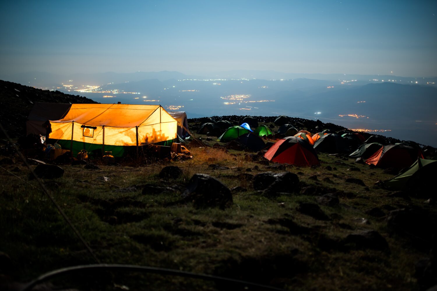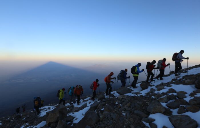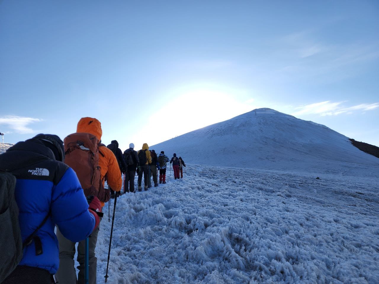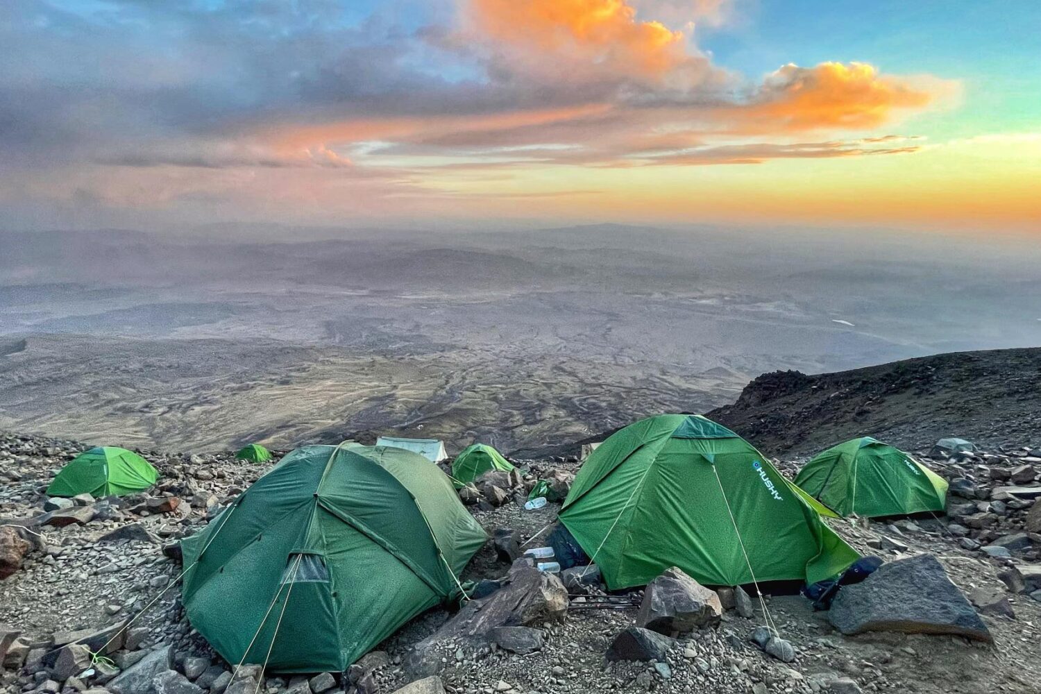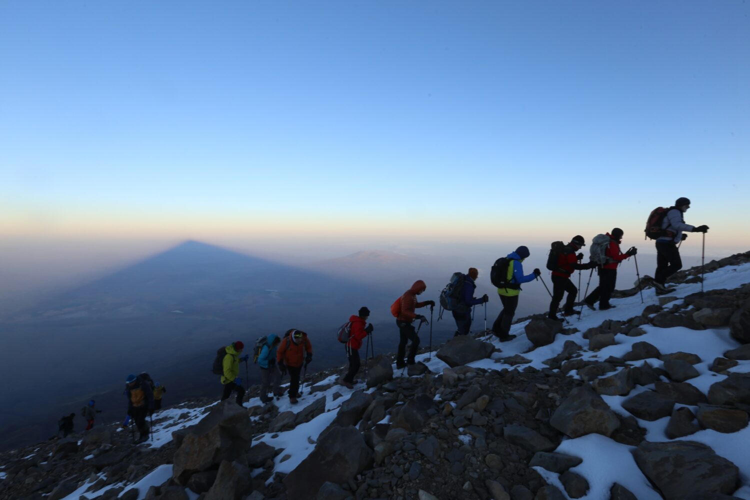 Αφύπνιση στις 1–2 π.μ. Πρωινό, ζεστό ρόφημα και έλεγχος εξοπλισμού. Ξεκινάμε με φακούς κεφαλης για την ανάβαση προς την κορυφή του Αραράτ