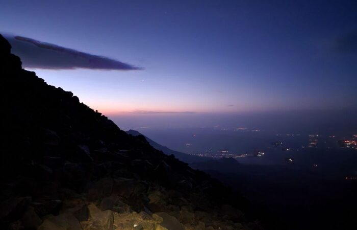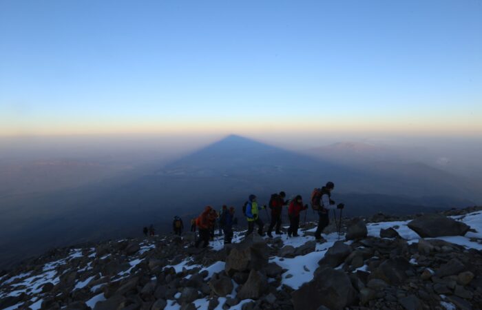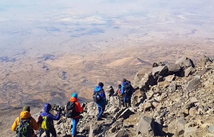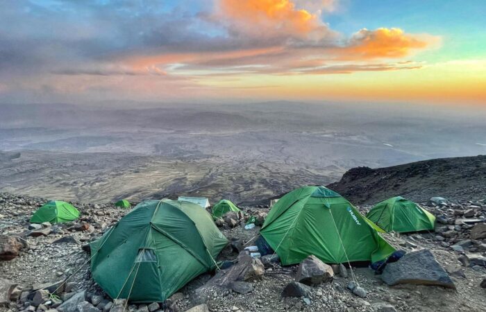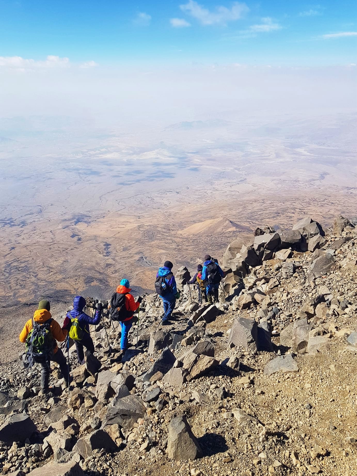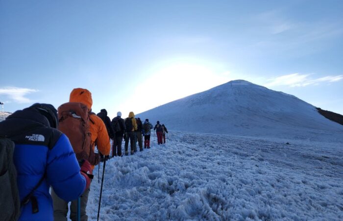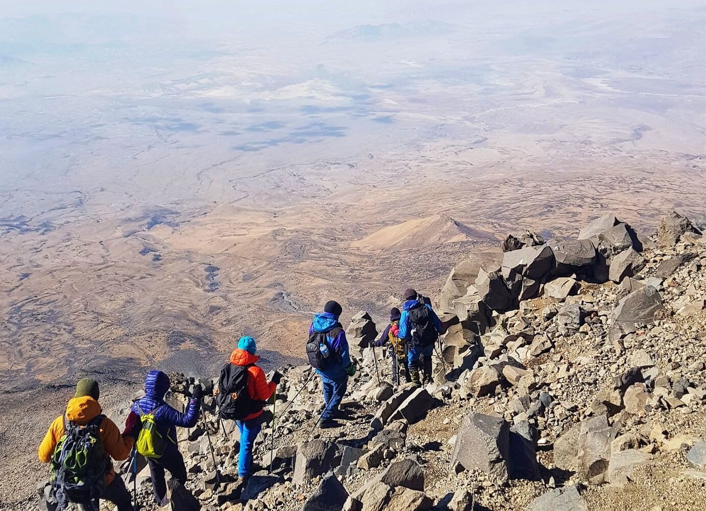 Αφύπνιση στις 1–2 π.μ. Πρωινό, ζεστό ρόφημα και έλεγχος εξοπλισμού. Ξεκινάμε με φακούς κεφαλης για την ανάβαση προς την κορυφή του Αραράτ