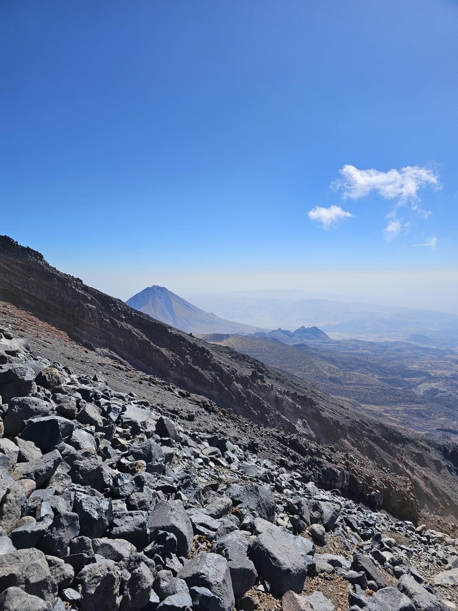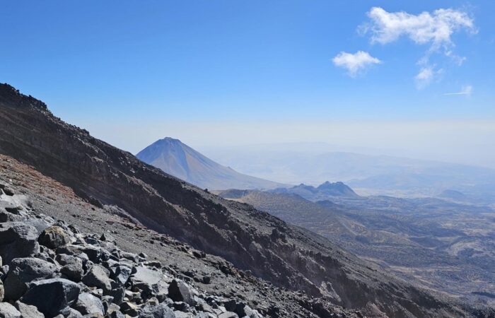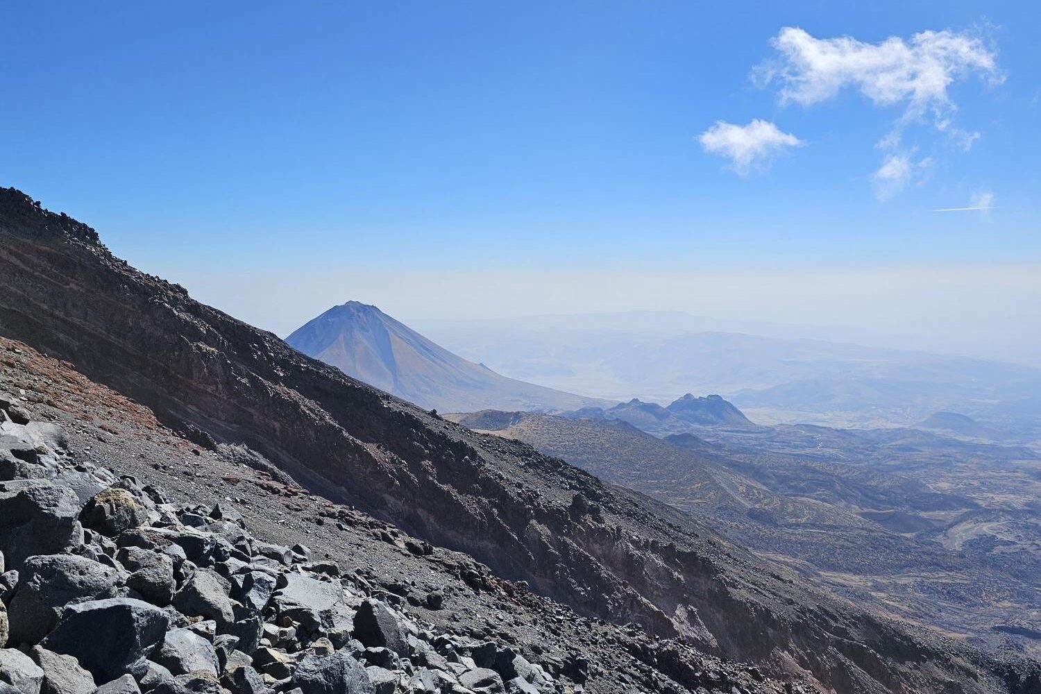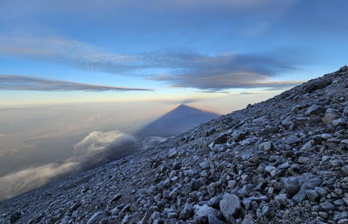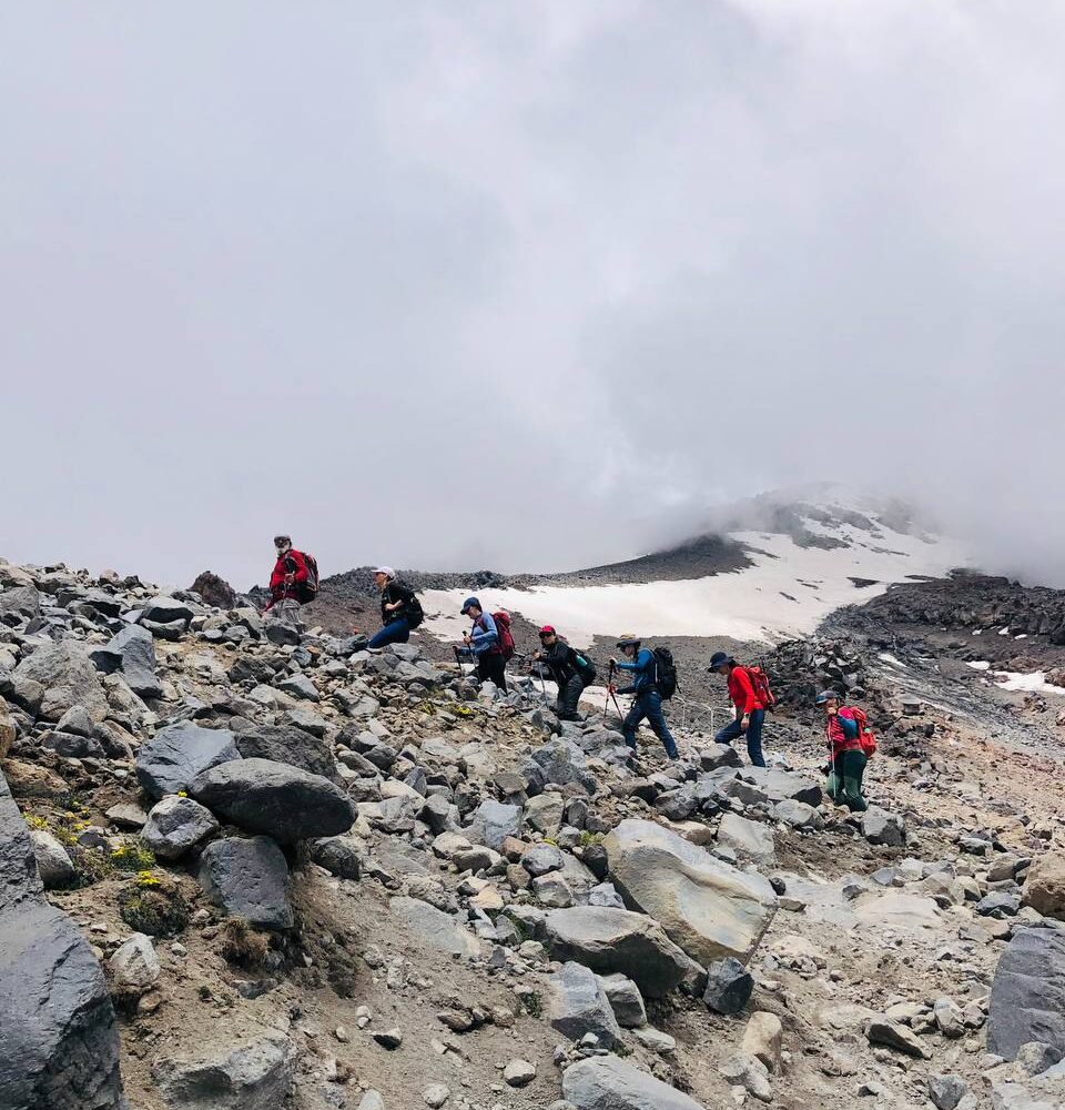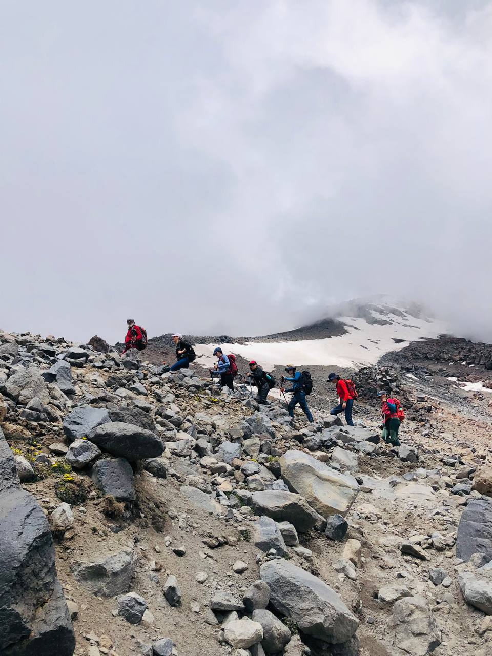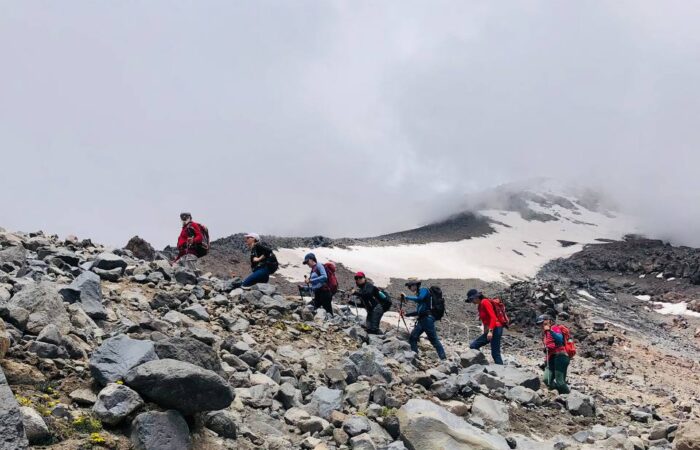 Κατόπιν κατάβαση στο Καταφύγιο 2 για μικρό διάλλειμα  και επιστροφή στο Καταφύγιο 1 (3.200 μ.). για δείπνο και ξεκούραση.