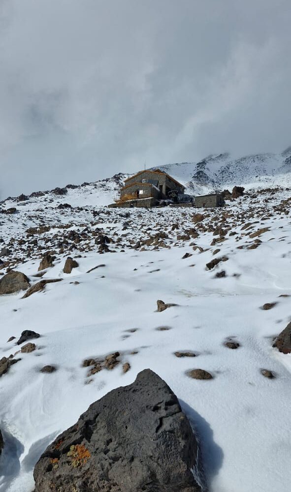 Κατόπιν κατάβαση στο Καταφύγιο 2 για μικρό διάλλειμα  και επιστροφή στο Καταφύγιο 1 (3.200 μ.). για δείπνο και ξεκούραση.